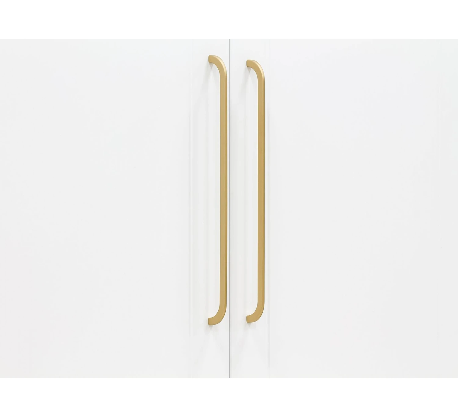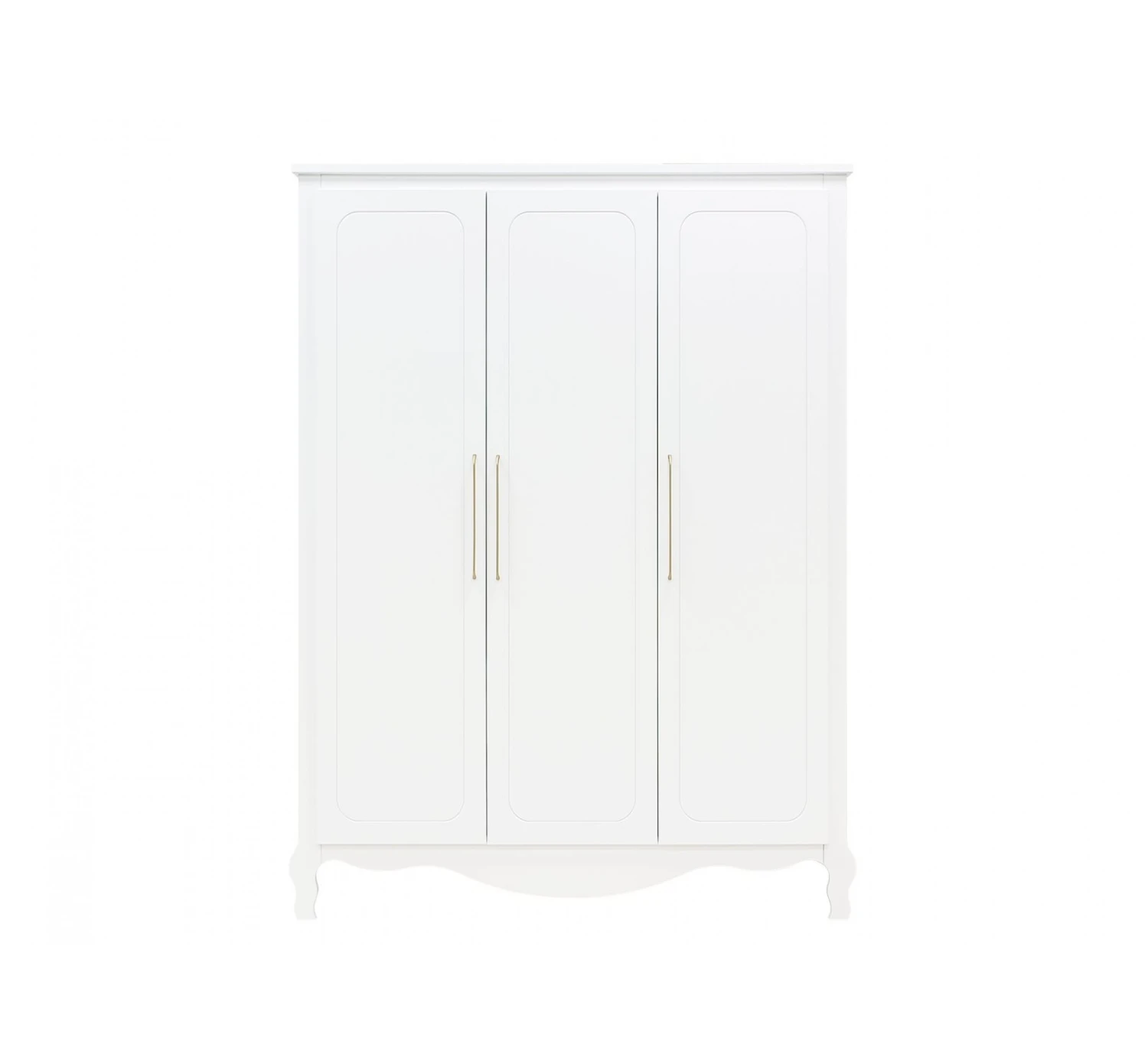 Deze ruime 3-deurskast Elena van het merk Bopita is niet alleen een schitterend meubel voor in de babykamer, maar biedt ook nog ontzettend veel opbergruimte. De kast is voorzien van een lade aan de onderzijde. Achter de twee grote deuren gaat veel ruimte schuil. De kast wordt geleverd met twee vaste legplanken, een hangroede en vijf in hoogte verstelbare legplanken. De deuren en lade zijn voorzien van ranke, matte, goudkleurige handgrepen. Dit is kenmerkend voor de serie Elena. De deuren zijn bovendien voorzien van subtiele groeven voor een extra chique effect.