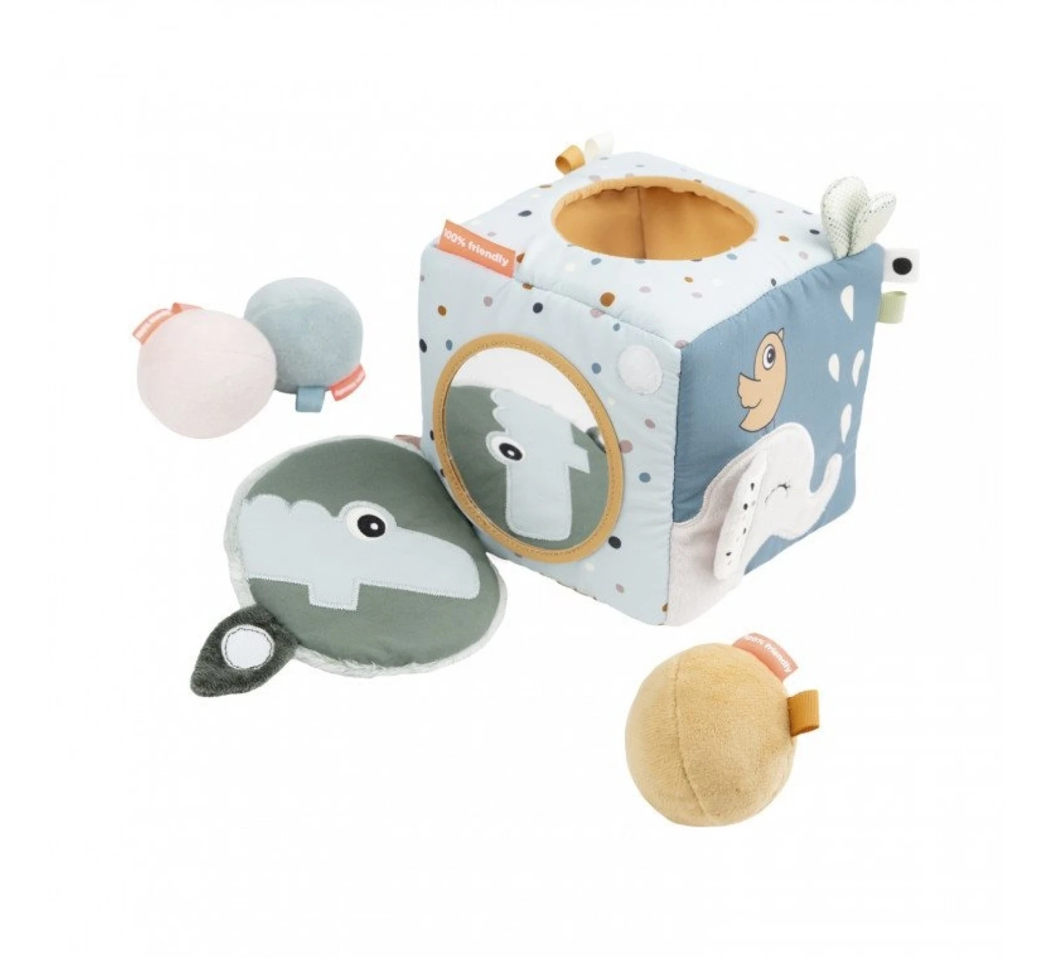 De activiteitenkubus is van het leuke merk Done by Deer. De kubus is voorzien van leuke kleuren, met verschillende structuren en labeltjes. Zo heeft je kindje met de kubus altijd weer iets nieuws te ontdekken. Met de verschillende activiteiten op de kubus wordt juist de hand- en oogcoördinatie gestimuleerd.