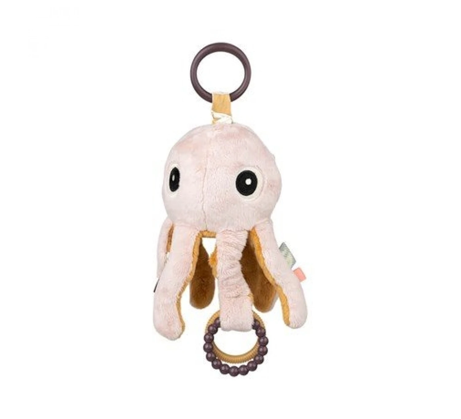 Aan de bovenkant is een handige ring bevestigd zodat de knuffel aan de maxi cosi, box of kinderwagen bevestigd kan worden, Zodra er aan de inktvis getrokken wordt gaat Jelly vibreren. Aan de onderkant vind je een spiegel waardoor je baby zichzelf kan zien. Jelly is een leuk en uitdagende speeltje om de zintuigen en het gehiir van uw kindje te stimuleren.