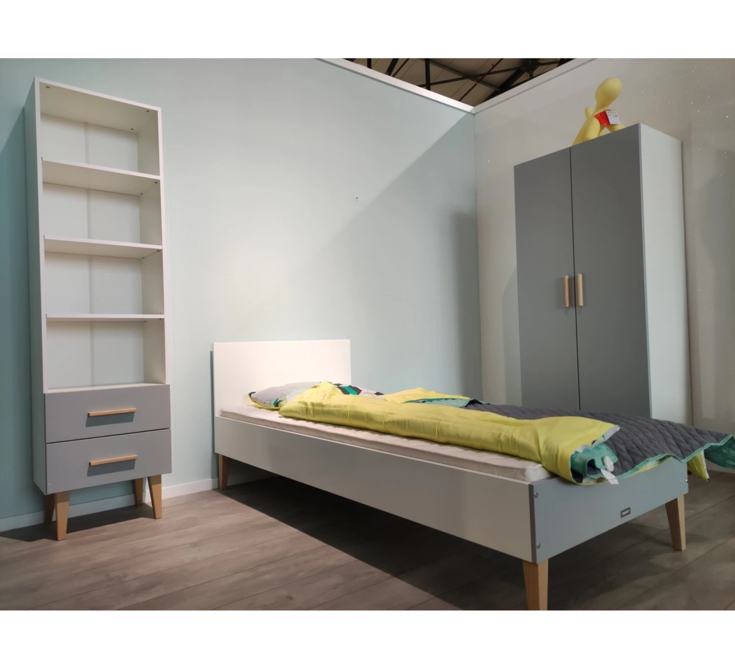 Deze stijlvolle Bopita kinderkamer bestaat uit een bed 90 x 200 cm (incl. lattenbodem), boekenkast en 2-deurskast. Bezoek onze showroom om deze kinderkamer te bekijken. Nieuw 988,-, nu 699,-.