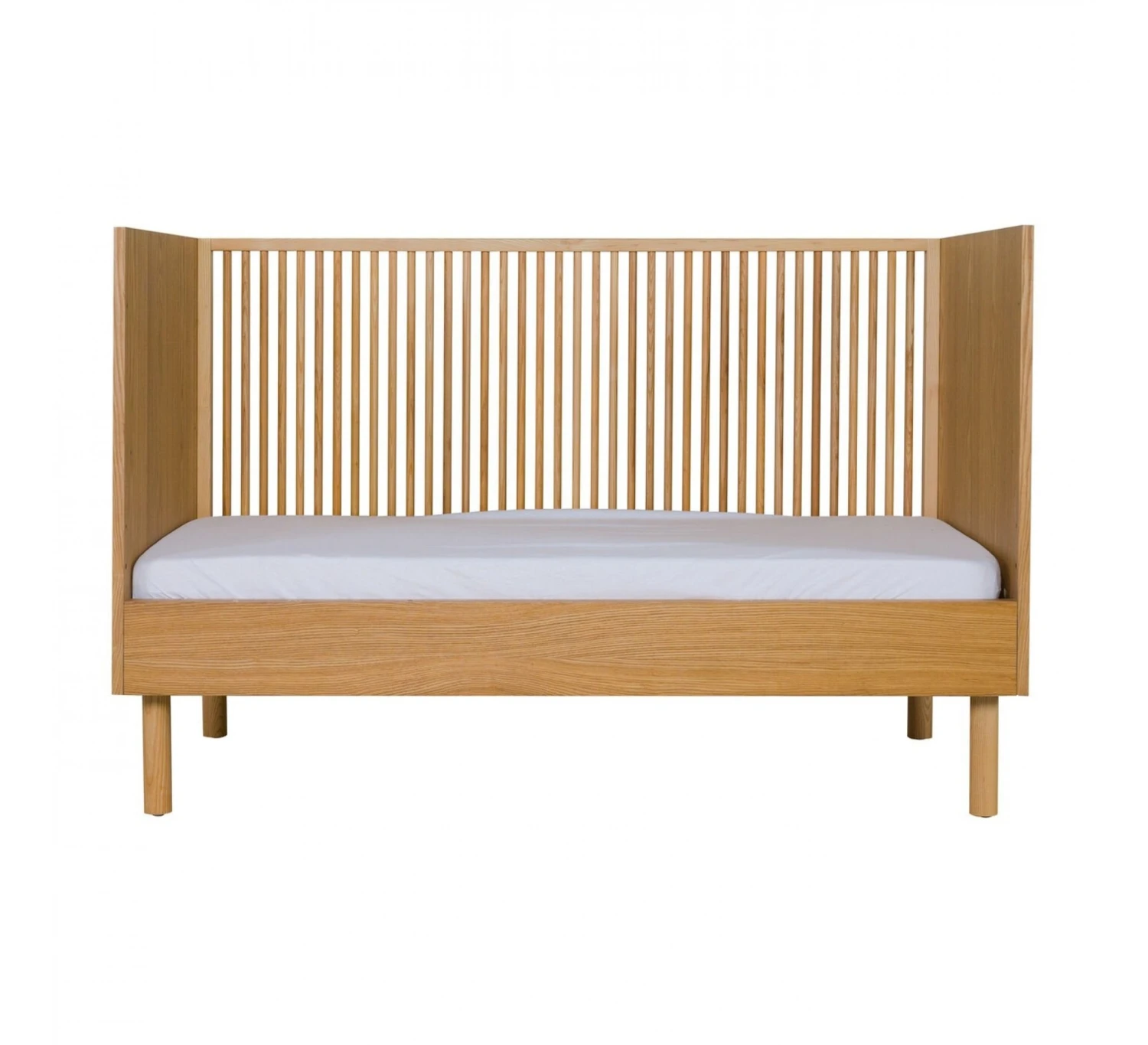 Het Quax Hai No Ki Bed (70×140 cm) is voorzien van een in twee hoogtes verstelbare bodem waardoor het eenvoudig meegroeit met je kleintje. Bovendien is dit bed omvormbaar tot een open kleuterbedje. De Hai No Ki-collectie is Japans geïnspireerd voor de liefhebbers van design, minimalistische eenvoud en de warmte van hout. Het Quax-bed is gemaakt van MDF-gefineerd essenhout en biedt ruimte voor een matras van 70×140 cm (niet inbegrepen).
