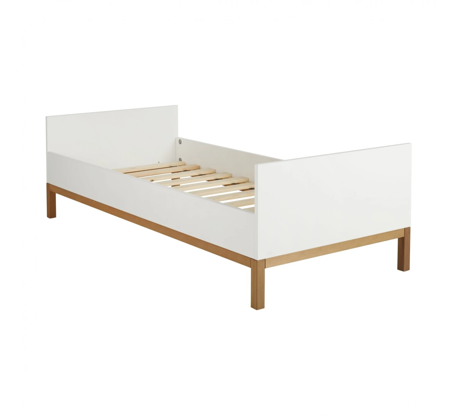 Dit mooie Indigo eenpersoonsbed van Quax is ideaal als eerste bed voor je kindje wanneer deze van een peuterbed naar een groot bed gaat. Het bed heeft een hoog voeten- en hoofdeinde en het strakke ontwerp met de speelse blankgelakte houten poten zorgt ervoor dat het bed in vrijwel elke kinderkamer goed tot zijn recht komt.