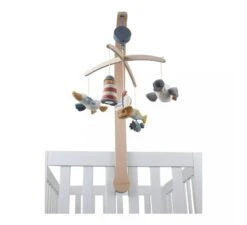 Deze mooie houten Little Dutch muziekmobiel werkt rustgevend voor baby’s dankzij het lieve slaapliedje. Aan de mobiel hangen vijf speeltjes uit de Sailors Bay collectie: een zeilbootje, een vissen-duo, een vuurtoren, de pelikaan Joe en de meeuw Jack. Baby’s kijken graag naar de beweging van deze speeltjes, wat hun visuele ontwikkeling stimuleert. De muziekmobiel is geschikt vanaf de geboorte en eenvoudig te bevestigen aan het kinderbed of de box.