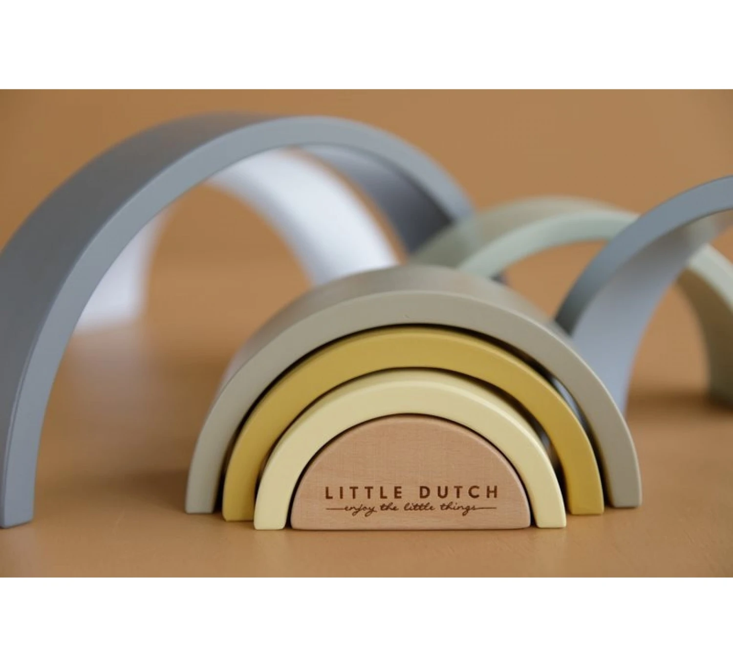 Dit is de Houten Regenboog Stapelaar van het merk Little Dutch. De regenboog bestaat uit 8 losse delen waardoor je allerlei verschillende creaties kan maken door het gebruiken van je fantasie.