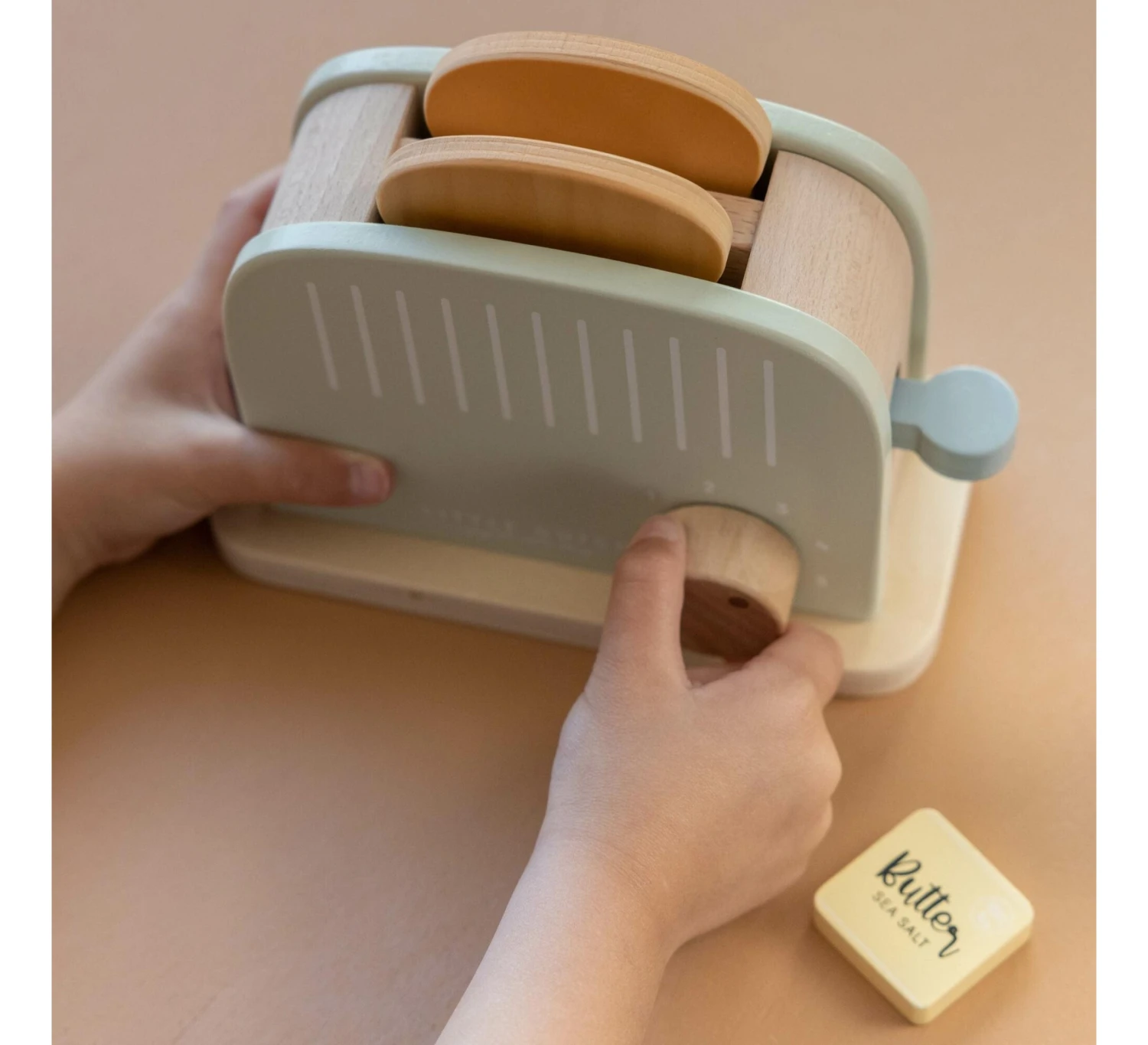 De dag begint met een heerlijk ontbijtje! Met deze houten broodrooster wordt dat een feestje en kan je kindje zelf de boterham roosteren en beleggen. Als je op de hendel drukt, springen de boterhammen uit de toaster!