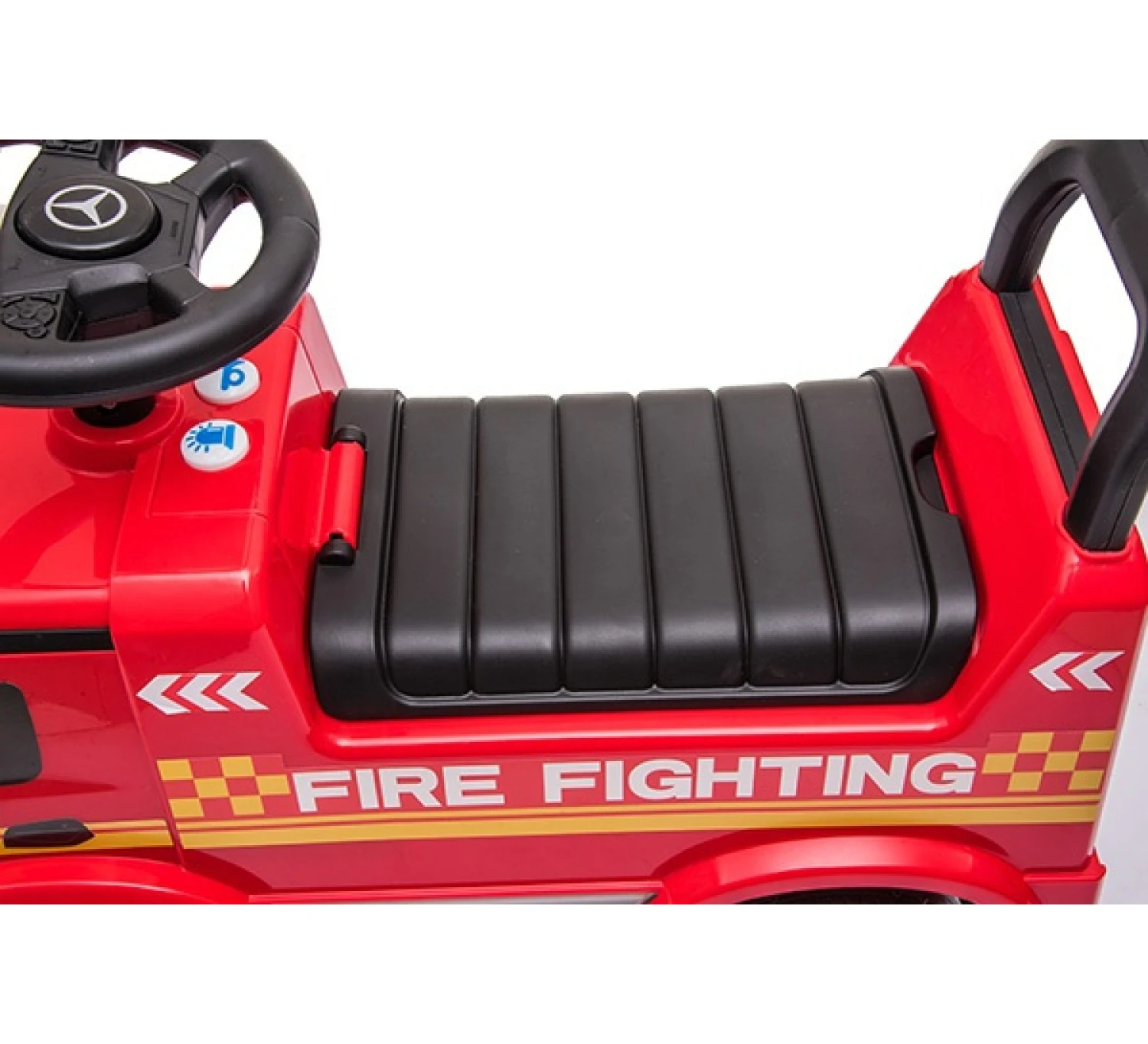 Os jouw kleintje ook zo’n fan van de brandweer? Met deze eigen loopauto voor kinderen heeft je kindje uren speelplezier. Hij is voorzien van licht en geluid zodat net als bij een echt brandweerwagen je goed zicht en hoorbaar bent. Natuurlijk neemt je kindje alle blusbenodigdheden mee in de handige opbergruimte onder de zitting. De brandweerwagen is voorzien van anti kantelblok aan de achterzijde wat de loopauto zeer stabiel maakt en het kans op omvallen verkleint. De claxon op het stuur zorgt natuurlijk voor vrolijke en bijpassende geluiden. Wist je dat een loopauto ook bij draagt aan de motoriek van je kleintje? Door zelfstandig op een loopauto te rijden leert je kindje de juiste bewegingen te maken wat de ontwikkeling bevorderd. Ook het sturen van de loopwagen draagt bij aan een goede ontwikkeling van de oog hand coördinatie.