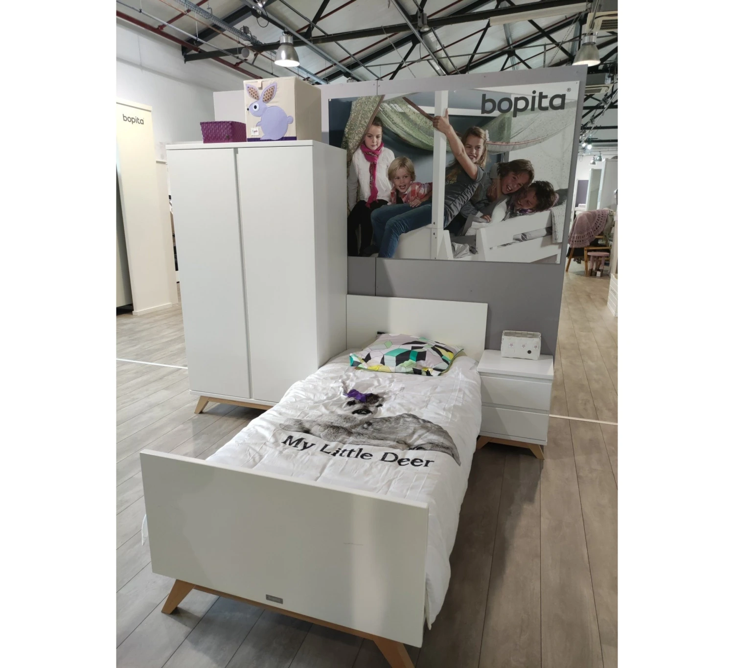Haal nu Bopita Lynn tienerkamer in huis. Deze 3-delige tienerkamer bestaat uit een bed 90 x 200 cm, een 2-deurskast en een nachtkastje. Normaal 1419,-, nu 999,-. Bezoek onze showroom om het showmodel te bekijken (en in te pakken).