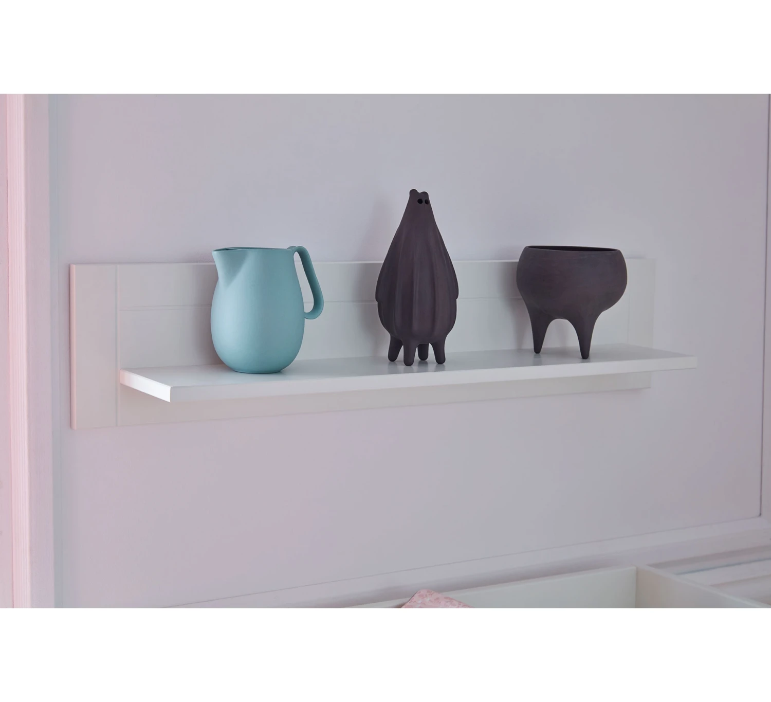 Decoreer je babykamer met dit mooie wandrek Marie van Pinio. De bevestiging van het wandrek is niet in het zicht, wat zorgt voor een mooie strakke afwerking. Zo kun je er mooi spulletjes of decoratie kwijt.