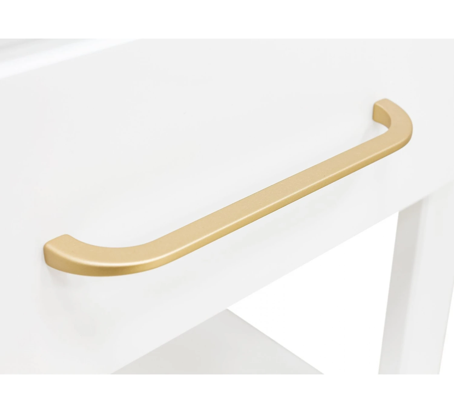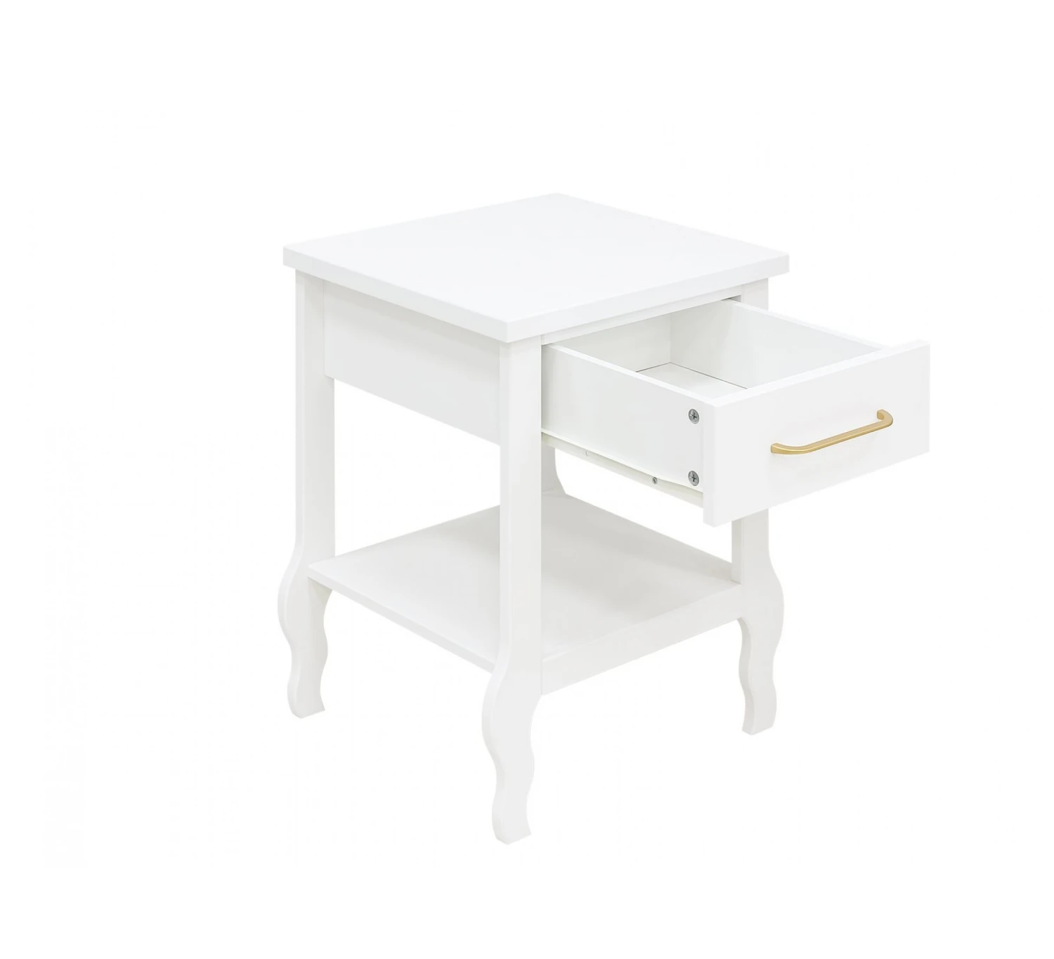 Het nachtkastje Elena is voorzien van een lade en een legplank. De lade is voorzien van een ranke, matte, goudkleurige handgreep. Het nachtkastje staat op sierlijke poten. Dit nachtkastje is ideaal om spullen in de lade op te bergen of een paar leesboeken makkelijk bij de hand te hebben naast bed.