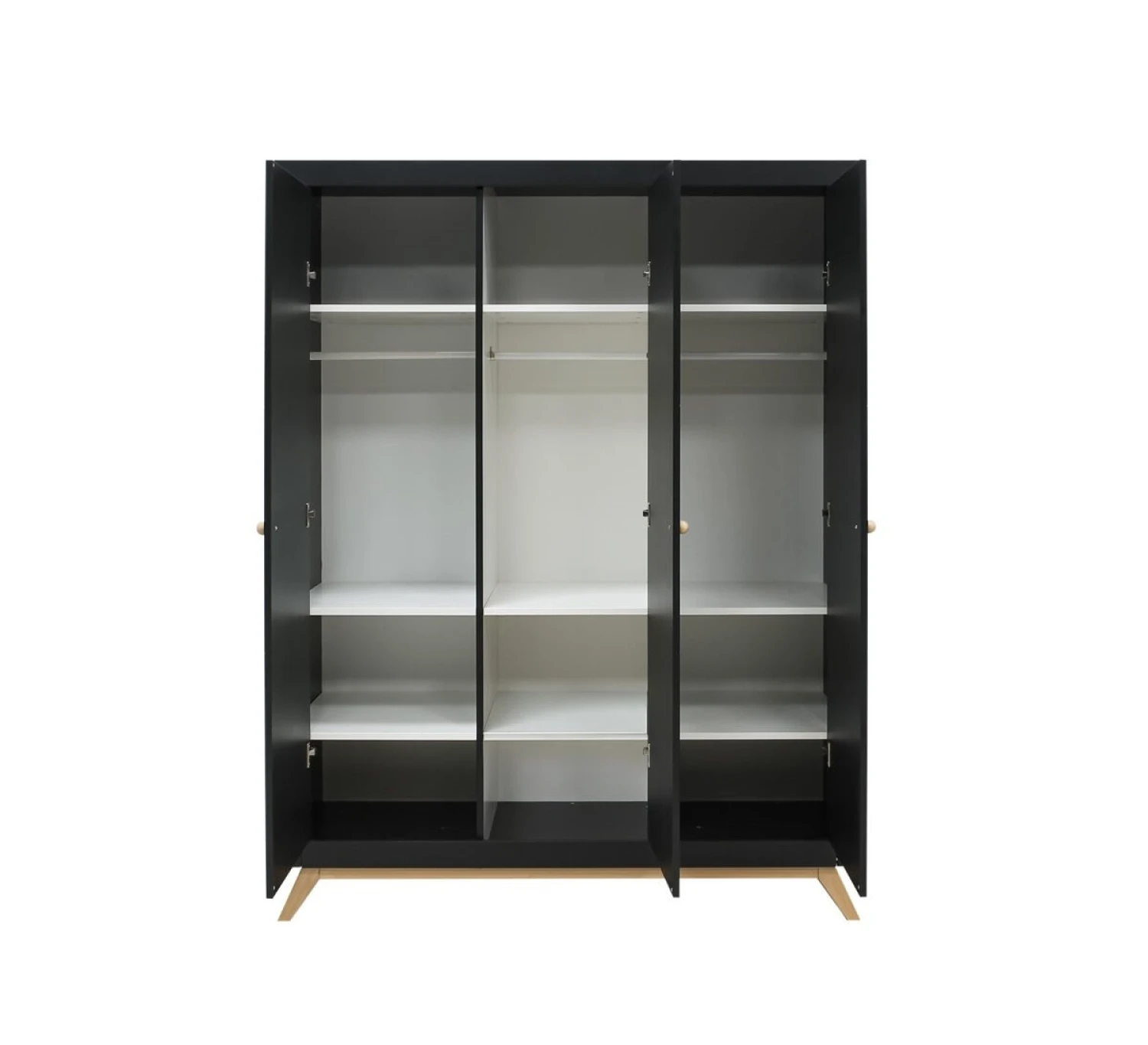 In de ruime Bopita Nora 3-Deurkast kun je alles kwijt! Kleding hang je aan één van de hangroedes. Voor schoenen en accessoires is er plek op één van de vaste legplanken. Heb je wat meer ruimte nodig op de legplank? Dan pas je de hoogte van één van de zes verstelbare legplanken simpelweg aan. De deuren van de kast hebben subtiele horizontale groeven. Dit maakt de kast naast praktisch, ook een mooie toevoeging voor in de kinderkamer.