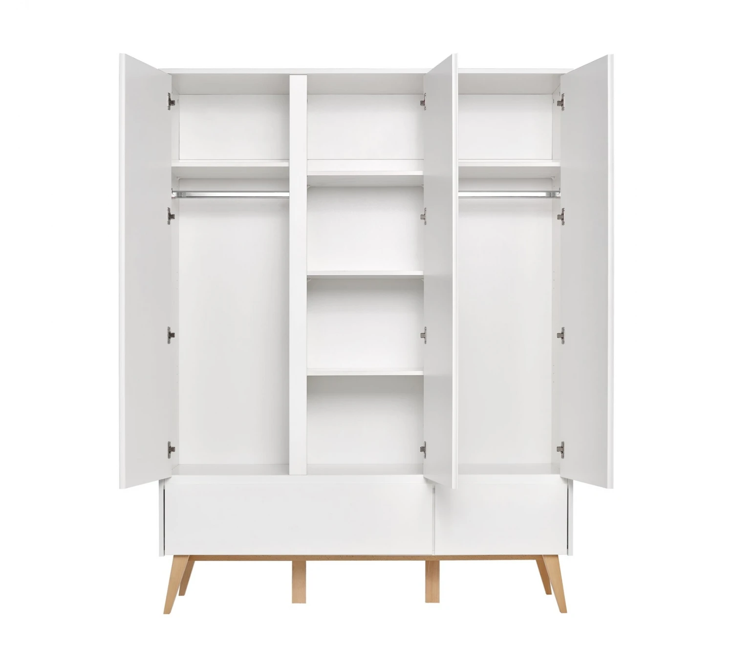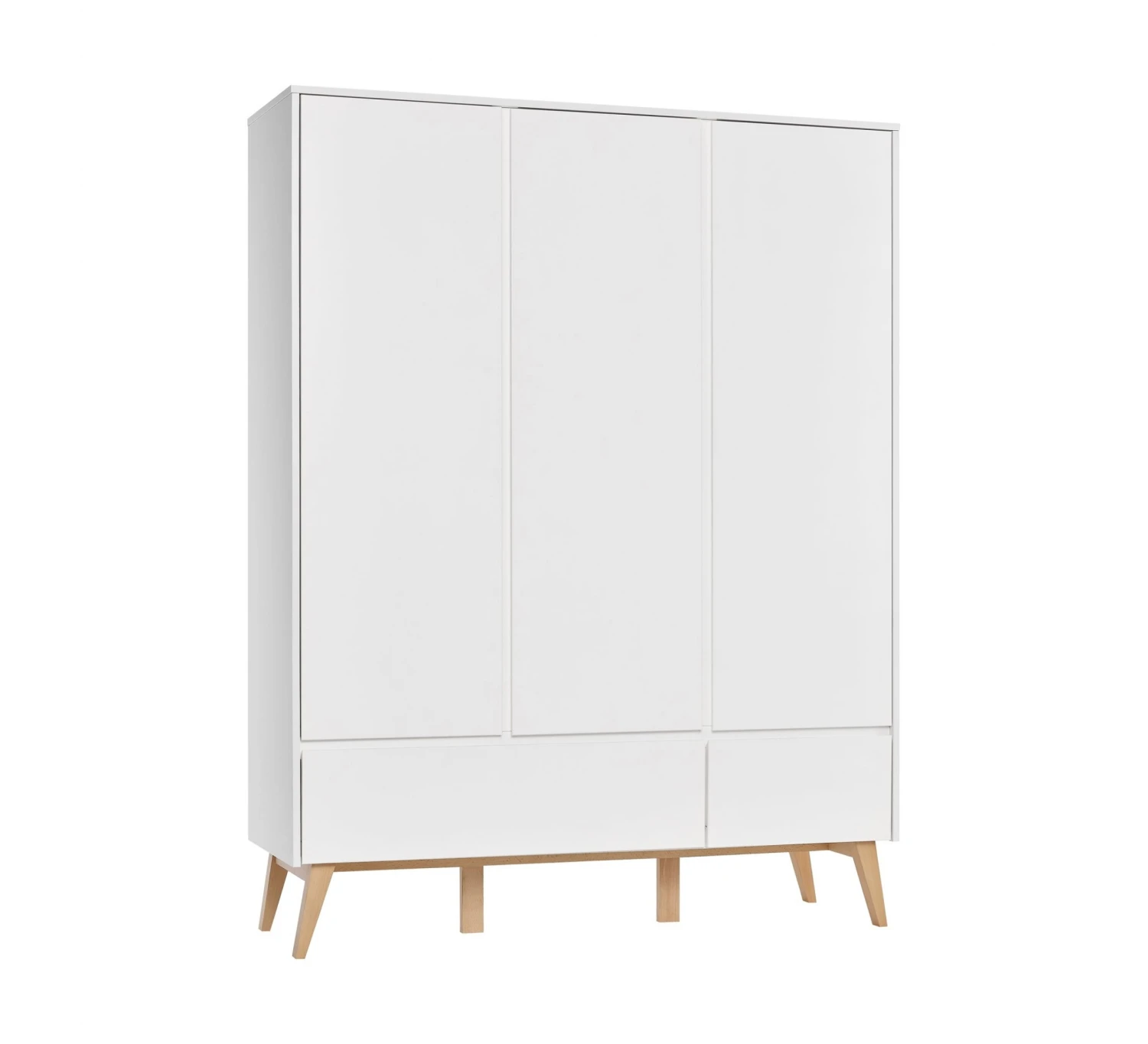 Als je een baby krijgt wordt je overspoeld met leuke kleertjes en spulletjes, maar waar laat je het allemaal? De Pinio Swing 3-deurskast biedt daarvoor de oplossing. Achter de twee deuren en de lade gaat namelijk een hoop opbergruimte schuil. De kast wordt geleverd met twee hangroedes en vijf legplanken, zodat je de kast goed kunt indelen. De stijlvolle ranke poten zorgen voor een mooie uitstraling die in iedere babykamer tot zijn recht komt.
