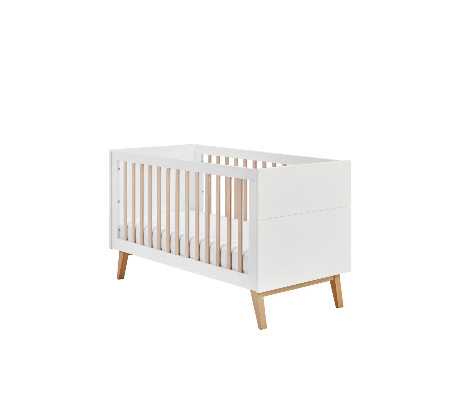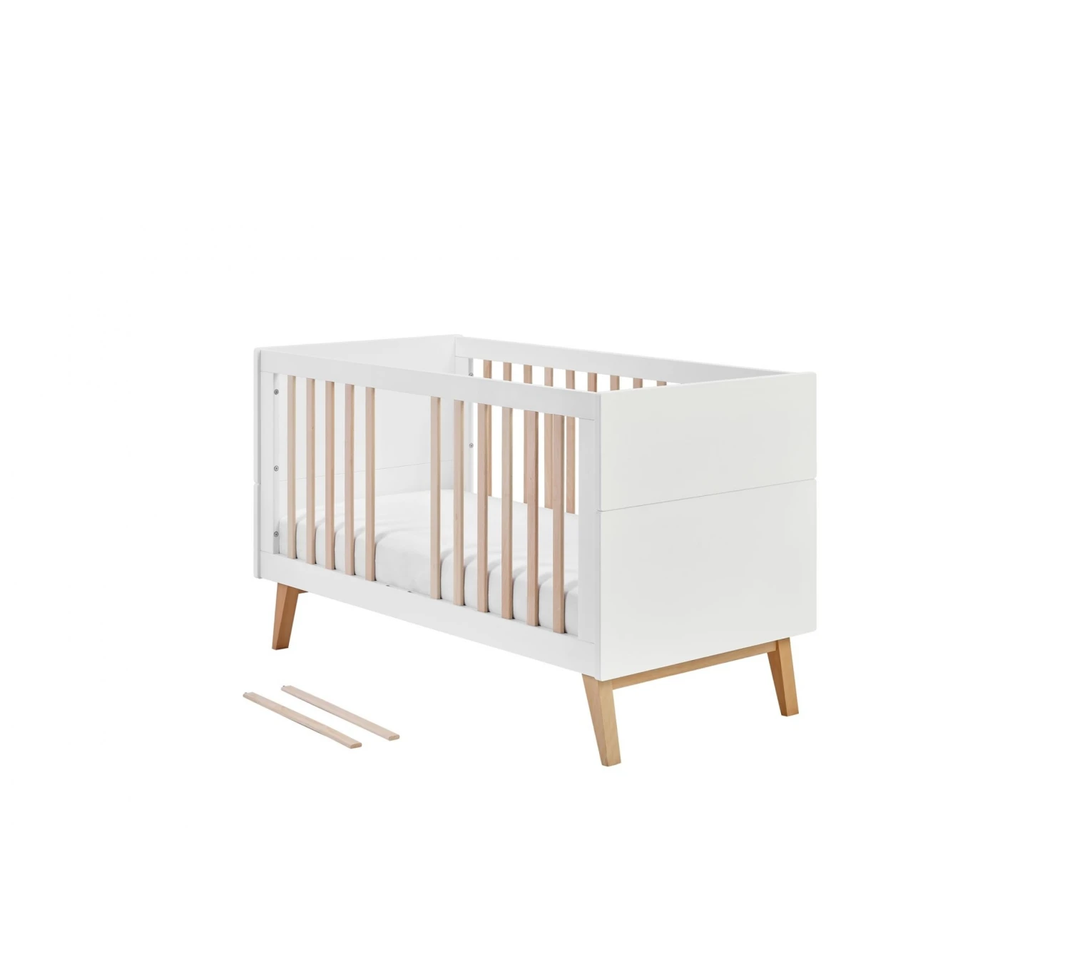 Het meegroei ledikant Swing van het merk Pinio is het ideale startersbedje. Het ledikant groeit namelijk mee met je kindje. Het bedje heeft een verstelbare bodem. Zodra je kindje zich gaat optrekken is het tijd om de bodem te verlagen, zodat je kindje veilig in z’n bedje ligt en er niet uit kan vallen. De twee middelste spijlen zijn uitneembaar, zodat je kindje vast kan oefenen bij het zelf in en uit bed stappen. Als je kindje oud genoeg is, is het mogelijk om de spijlenzijdes eruit te halen. Hiermee bouw je het ledikant om naar een peuterbedje, waardoor je kindje zelf in en uit bed kan. Dit maakt dat het ledikant meegroeit met je kindje. Het is zelfs mogelijk een opberglade onder het ledikant te plaatsen, zodat je extra opbergruimte hebt voor spulletjes.