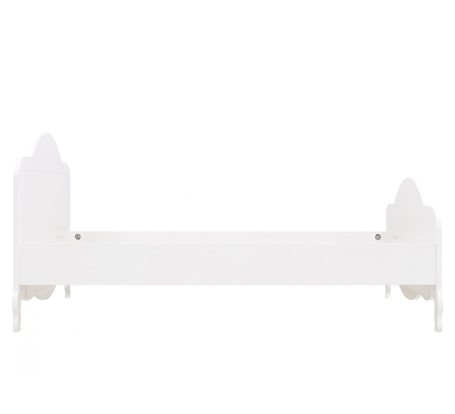 Deze twijfelaar 120×200 Elena uit de collectie van Bopita is een stijlvol bed met een klassieke uitstraling. Dit komt door de kenmerkende golven aan het hoofd- en voeteneinde en de sierlijke pootjes. Het bed is afgewerkt met witte lak op waterbasis en de golvende kam is voorzien van subtiele groeven. Het bed wordt geleverd inclusief lattenbodem.