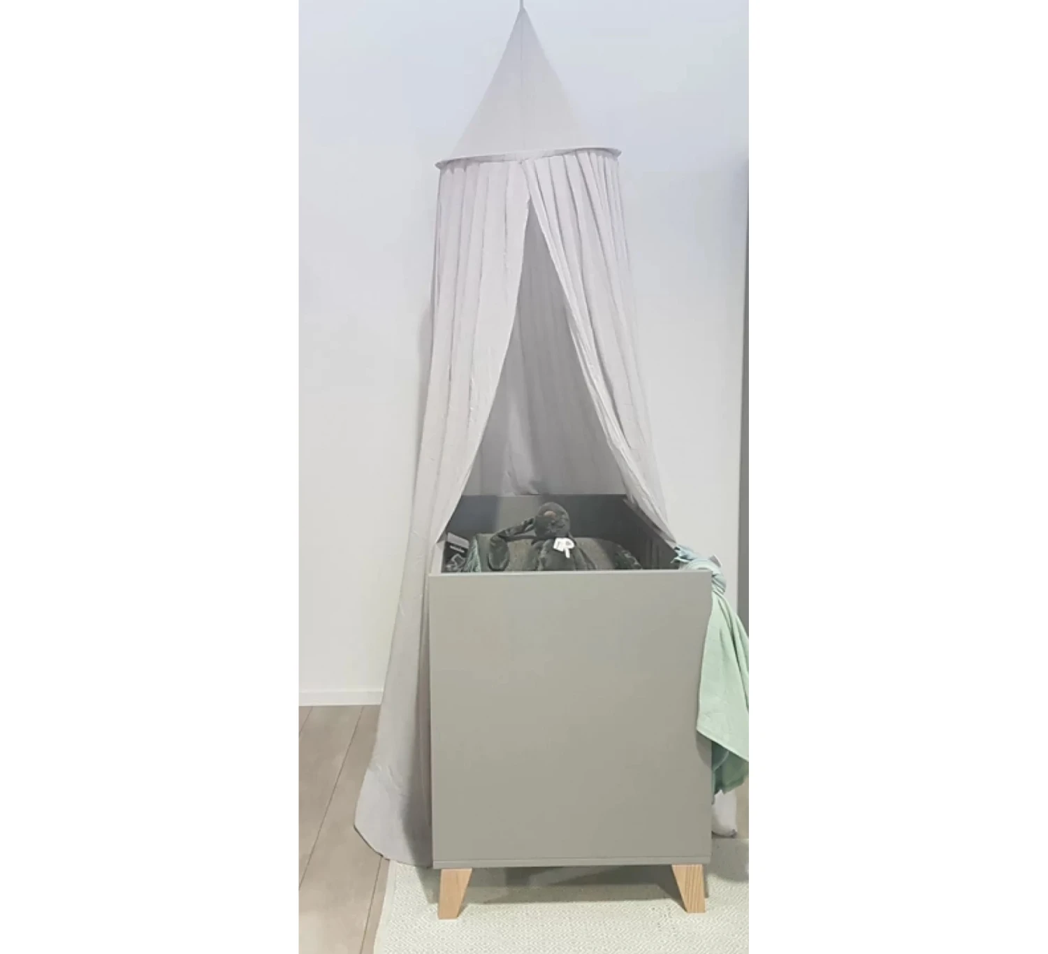 Dit ledikant van het merk Transland is een heerlijke rustplek voor je kindje. Het ledikant is uitgevoerd in een stijlvolle grijze kleur en voorzien van blankgelakte houten poten voor een stoer effect.